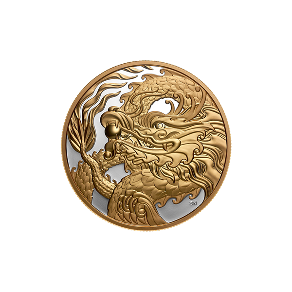 Welcome the new year with a majestic Chinese dragon that symbolizes good fortune and triumph over adversity. Engraved on a 5 oz. 99.99% pure silver canvas, the gold-plated dragon holds the pearl of wisdom in its mouth on the coin’s reverse, while the pattern on the obverse suggests a new direction, a favourable change in fortune. Together, the two sides of the coin bring blessings of positive energy for a happy, successful year marked by achievements.